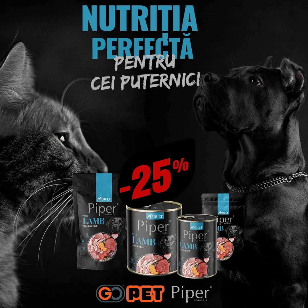 Piper Animals cu prepeliță și merișorFuraj umed complet pentru câini adulți de toate rasele, cu prepeliță și merișor.Compoziție: carne și derivate de ..